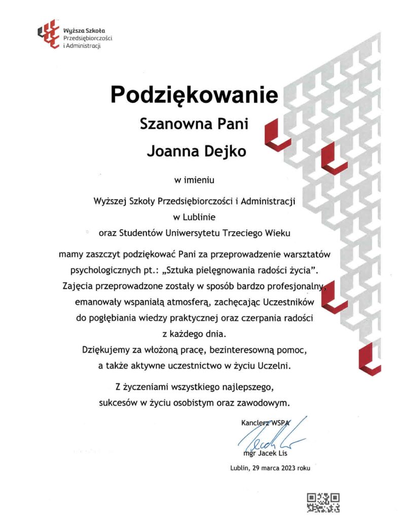Podziękowania Sztuka pielęgnowania radości życia